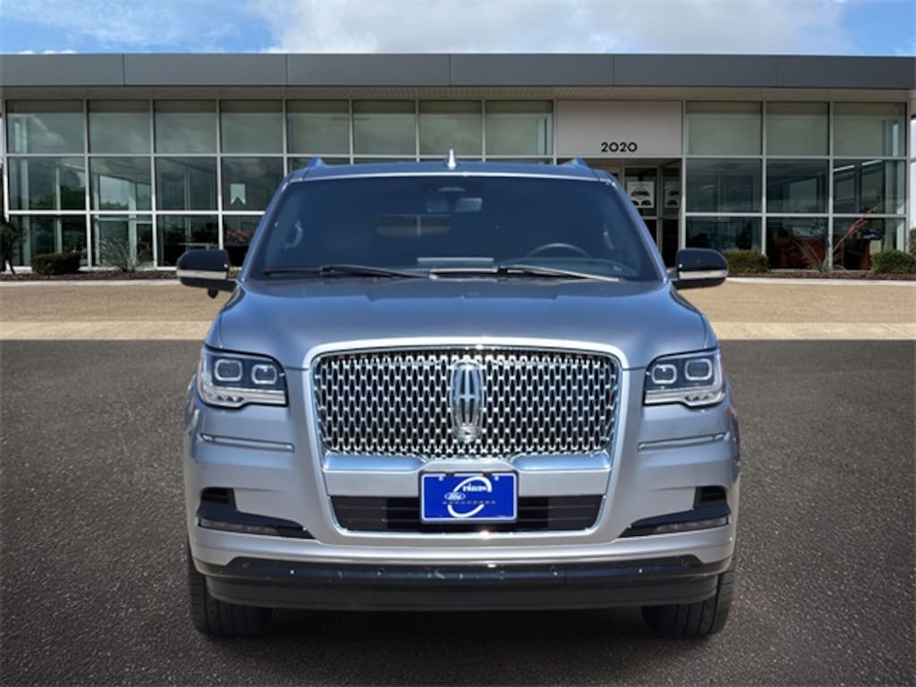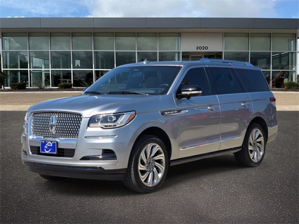This 2023 Silver Radiance Metallic Clearcoat Lincoln Navigator Reserve 4WD is well equipped and includes these features and benefits: Equipment Group 201A Reserve I, Heavy-Duty Trailer Tow Package (26mm Radiator, Class IV w/4-Pin & 7-Pin Connectors, Electronic Traction Assist (eLSD), Front Tow Hooks, Pro-Trailer Backup Assist 2.0, Smart Trailer Tow, Tiered Cargo Area Management System, Trailer Brake Controller, and Trailer Sway Control), Luxury Package (Illuminated 1st & 2nd Row Seat Belts, Lincoln Lit Star in Grille, Perfect Position Seats (30-Way) w/Active Motion, and Radio: Revel Ultima 3D Audio System w/28 Speakers), Lincoln Certified Pre-Owned Certified, 4WD, Black Onyx/Roast Leather, 14 Speakers, 3.73 Axle Ratio, 3rd row seats: split-bench, 4-Wheel Disc Brakes, ABS brakes, Active Park Assist 2.0 Delete, Adaptive suspension, Adjustable pedals, Air Conditioning, Alloy wheels, AM/FM radio: SiriusXM with 360L, Audio memory, Auto High-beam Headlights, Auto Start-Stop Technology, Auto tilt-away steering wheel, Auto-dimming door mirrors, Auto-dimming Rear-View mirror, Auto-leveling suspension, Automatic temperature control, Bodyside moldings, Brake assist, Bumpers: body-color, Compass, Delay-off headlights, Driver door bin, Driver vanity mirror, Driver's Seat Mounted Armrest, Dual front impact airbags, Dual front side impact airbags, Electronic Stability Control, Emergency communication system: 911 Assist, Exterior Parking Camera Rear, Four wheel independent suspension, Front anti-roll bar, Front Bucket Seats, Front dual zone A/C, Front fog lights, Front reading lights, Fully automatic headlights, Garage door transmitter, Genuine wood dashboard insert, Genuine wood door panel insert, Hands-Free Liftgate Delete, Head restraints memory, Heads-Up Display, Heated door mirrors, Heated front seats, Heated rear seats, Heated steering wheel, HVAC memory, Illuminated entry, Leather steering wheel, Low tire pressure warning, Memory seat, Navigation system: Connected Navigation (3-year trial), Occupant sensing airbag, Outside temperature display, Overhead airbag, Overhead console, Panic alarm, Passenger door bin, Passenger seat mounted armrest, Passenger vanity mirror, Pedal memory, Power adjustable rear head restraints, Power door mirrors, Power driver seat, Power Liftgate, Power moonroof: Panoramic Vista Roof, Power passenger seat, Power steering, Power windows, Prem Lthr Auto Htd/Ventiltd Perfect Position Seats, Radio data system, Radio: Revel AM/FM/HD/MP3 Audio System, Rain sensing wipers, Rear air conditioning, Rear anti-roll bar, Rear audio controls, Rear reading lights, Rear window defroster, Rear window wiper, Reclining 3rd row seat, Remote keyless entry, Security system, SiriusXM w/360L, Slow Climb Drive Mode, Speed control, Speed-sensing steering, Speed-Sensitive Wipers, Split folding rear seat, Spoiler, Steering wheel memory, Steering wheel mounted audio controls, SYNC 4 Communications & Entertainment System, Tachometer, Telescoping steering wheel, Tilt steering wheel, Traction control, Trip computer, Turn signal indicator mirrors, Variably intermittent wipers, Ventilated front seats, Ventilated rear seats, Voice-Activated Touchscreen Navigation System, and Wheels: 22" Bright Machined Aluminum.