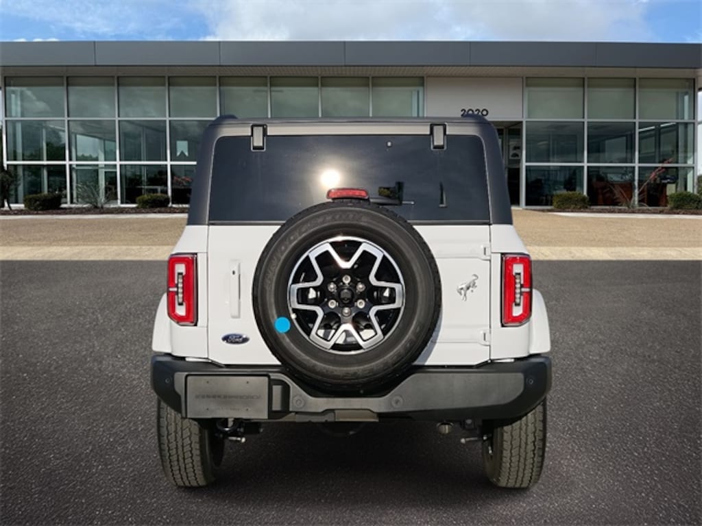 Oxford White 2025 Ford Bronco Outer Banks 4WD 10-Speed Automatic 2.3L EcoBoost I-4 18" Bright Machined Aluminum Wheels, 3.73 Axle Ratio, 4-Wheel Disc Brakes, 7 Speakers, ABS brakes, Air Conditioning, Alloy wheels, AM/FM radio: SiriusXM with 360L, AM/FM Stereo, Auto High-beam Headlights, Auto-dimming Rear-View mirror, Automatic temperature control, Brake assist, Compass, Connected Navigation, Delay-off headlights, Driver door bin, Driver vanity mirror, Dual front impact airbags, Dual front side impact airbags, Electronic Stability Control, Emergency communication system: 911 Assist, Exterior Parking Camera Rear, Front anti-roll bar, Front Bucket Seats, Front Center Armrest, Front dual zone A/C, Front fog lights, Front reading lights, Front wheel independent suspension, Fully automatic headlights, Heated door mirrors, Heated front seats, Heated Leather-Trimmed/Vinyl Bucket Seats, Heated steering wheel, Illuminated entry, Integrated roll-over protection, Leather Shift Knob, Low tire pressure warning, Navigation system: Connected Navigation, Occupant sensing airbag, Outside temperature display, Overhead airbag, Overhead console, Panic alarm, Passenger door bin, Passenger vanity mirror, Power door mirrors, Power driver seat, Power passenger seat, Power steering, Power windows, Radio data system, Rear seat center armrest, Remote keyless entry, Security system, SiriusXM w/360L, Speed control, Split folding rear seat, Steering wheel mounted audio controls, SYNC 4, Tachometer, Telescoping steering wheel, Tilt steering wheel, Traction control, Trip computer, Variably intermittent wipers, and Voltmeter.