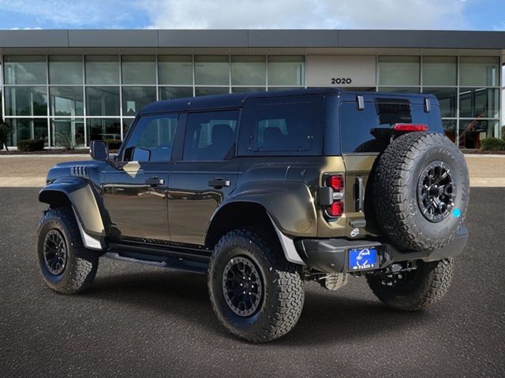 Shelter Green Metallic 2025 Ford Bronco Raptor 4WD 10-Speed Automatic 3.0L EcoBoost V6 12 Speakers, 4-Wheel Disc Brakes, ABS brakes, Air Conditioning, Alloy wheels, AM/FM radio: SiriusXM with 360L, Auto High-beam Headlights, Auto-dimming Rear-View mirror, Automatic temperature control, Brake assist, Compass, Connected Navigation, Convertible HardTop, Convertible roof lining, Delay-off headlights, Driver door bin, Driver vanity mirror, Dual front impact airbags, Dual front side impact airbags, Electronic Stability Control, Emergency communication system: 911 Assist, Exterior Parking Camera Rear, Front anti-roll bar, Front Bucket Seats, Front Center Armrest, Front dual zone A/C, Front fog lights, Front reading lights, Front wheel independent suspension, Fully automatic headlights, Garage door transmitter, Glass rear window, Heated door mirrors, Heated front seats, Heated steering wheel, Illuminated entry, Integrated roll-over protection, Leather Shift Knob, Low tire pressure warning, Marine Grade Vinyl Bucket Seats, Navigation system: Connected Navigation, Occupant sensing airbag, Outside temperature display, Overhead airbag, Overhead console, Panic alarm, Passenger door bin, Passenger vanity mirror, Power door mirrors, Power steering, Power windows, Radio data system, Radio: B&O Sound System by Bang & Olufsen, Rear anti-roll bar, Rear seat center armrest, Rear window defroster, Rear window wiper, Remote keyless entry, Security system, SiriusXM w/360L, Speed control, Split folding rear seat, Steering wheel mounted audio controls, SYNC 4, Tachometer, Telescoping steering wheel, Tilt steering wheel, Traction control, Trip computer, Turn signal indicator mirrors, Variably intermittent wipers, Voltmeter, and Wheels: 17" Black High Gloss-Painted Aluminum.