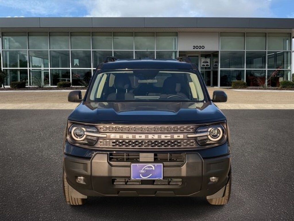 Shadow Black 2025 Ford Bronco Sport Big Bend 4WD 8-Speed Automatic 1.5L EcoBoost Convenience Package (Front Driver/Passenger Seat Back Map Pockets, Heated 8-Way Power Driver's Seat, LED Fog Lamps, Premium Wrapped Steering Wheel, and Universal Garage Door Opener (UGDO)), Equipment Group 200A, 4-Wheel Disc Brakes, 6 Speakers, ABS brakes, Air Conditioning, Alloy wheels, AM/FM radio: SiriusXM, AM/FM Stereo, Auto High-beam Headlights, Automatic temperature control, Brake assist, Cloth w/Easy-to-Clean Front Bucket Seats, Compass, Delay-off headlights, Driver door bin, Driver vanity mirror, Dual front impact airbags, Dual front side impact airbags, Electronic Stability Control, Emergency communication system: SYNC 4 911 Assist, Four wheel independent suspension, Front anti-roll bar, Front Bucket Seats, Front Center Armrest, Front License Plate Bracket, Front reading lights, Fully automatic headlights, Heated door mirrors, Illuminated entry, Knee airbag, Low tire pressure warning, Occupant sensing airbag, Outside temperature display, Overhead airbag, Overhead console, Panic alarm, Passenger door bin, Passenger vanity mirror, Power door mirrors, Power steering, Power windows, Radio data system, Rear anti-roll bar, Rear Parking Sensors, Rear reading lights, Rear seat center armrest, Rear window defroster, Rear window wiper, Remote keyless entry, Security system, SiriusXM, Speed control, Speed-sensing steering, Speed-Sensitive Wipers, Split folding rear seat, Steering wheel mounted audio controls, SYNC 4 w/Enhanced Voice Recognition, Tachometer, Telescoping steering wheel, Tilt steering wheel, Traction control, Trip computer, Variably intermittent wipers, and Wheels: 17" Carbonized Gray-Painted Aluminum.
