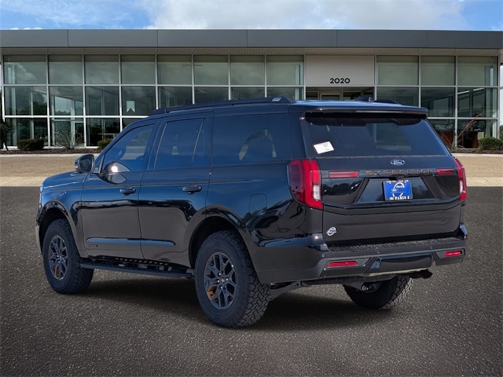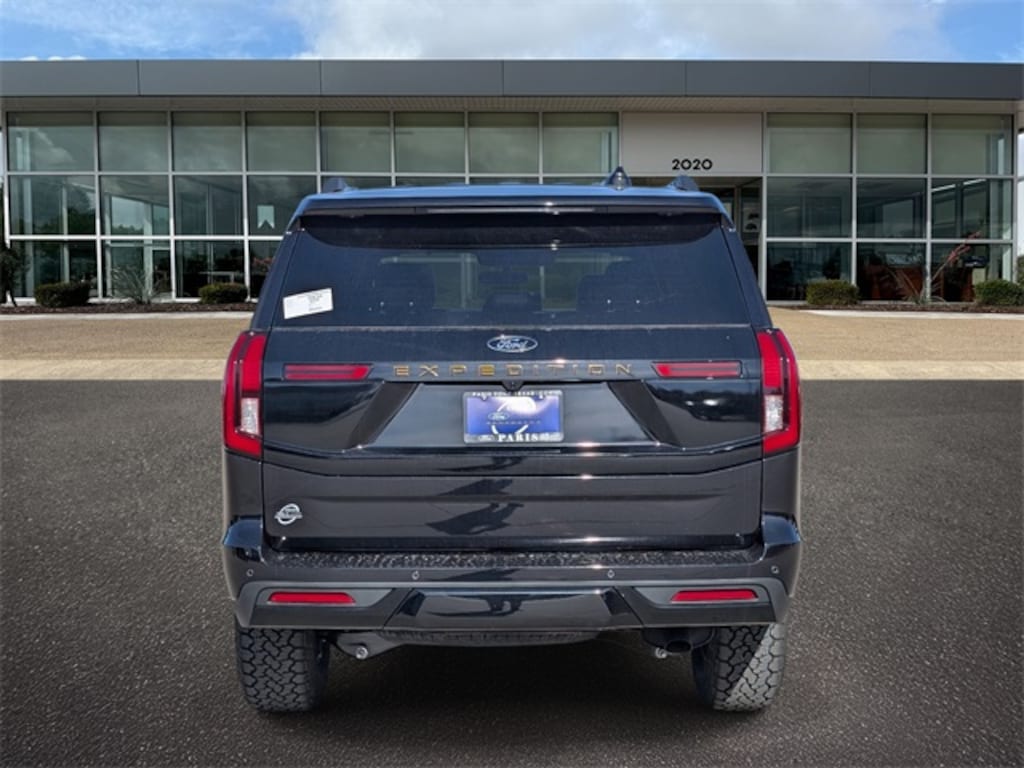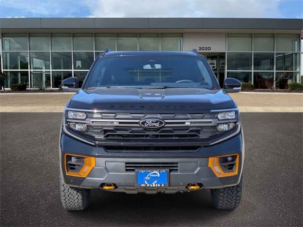 Agate Black Metallic 2025 Ford Expedition Tremor 4WD 10-Speed Automatic 3.5L V6 Equipment Group 501A High Package (2nd Row Power-Folding Captain's Chairs), 4WD, 10 Speakers, 3.73 Axle Ratio, 3rd row seats: split-bench, 4-Wheel Disc Brakes, ABS brakes, Adjustable pedals, Air Conditioning, Alloy wheels, AM/FM radio: SiriusXM with 360L, Apple CarPlay/Android Auto, Auto High-beam Headlights, Auto-dimming door mirrors, Auto-dimming Rear-View mirror, Automatic temperature control, Brake assist, Bumpers: body-color, Compass, Delay-off headlights, Driver door bin, Driver vanity mirror, Dual front impact airbags, Dual front side impact airbags, Electronic Stability Control, Emergency communication system: 911 Assist, Exterior Parking Camera Rear, Four wheel independent suspension, Front anti-roll bar, Front Bucket Seats, Front Center Armrest, Front dual zone A/C, Front fog lights, Front License Plate Bracket, Front reading lights, Fully automatic headlights, Garage door transmitter, Heated & Ventilated Leather Front Captain's Chairs, Heated door mirrors, Heated front seats, Heated steering wheel, Illuminated entry, Leather steering wheel, Low tire pressure warning, Memory seat, Navigation System, Occupant sensing airbag, Outside temperature display, Overhead airbag, Overhead console, Panic alarm, Passenger door bin, Passenger vanity mirror, Pedal memory, Power door mirrors, Power driver seat, Power moonroof: Vista Roof, Power passenger seat, Power steering, Power windows, Radio data system, Radio: B&O Sound System by Bang & Olufsen, Rear air conditioning, Rear anti-roll bar, Rear reading lights, Rear window defroster, Rear window wiper, Reclining 3rd row seat, Remote keyless entry, Security system, SiriusXM w/360L, Speed control, Speed-sensing steering, Speed-Sensitive Wipers, Split folding rear seat, Spoiler, Steering wheel memory, Steering wheel mounted audio controls, Tachometer, Telescoping steering wheel, Tilt steering wheel, Traction control, Trip computer, Turn signal indicator mirrors, Variably intermittent wipers, Ventilated front seats, Voltmeter, and Wheels: 18" Dark Carbonized Gray Painted Aluminum. 4WD.