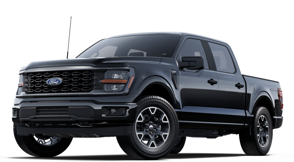 Agate Black Metallic 2025 Ford F-150 STX 4WD 10-Speed Automatic 5.0L V8 GVWR: 6,650 lbs Payload Package, 4WD, 3.55 Axle Ratio, 4-Wheel Disc Brakes, 6 Speakers, ABS brakes, Air Conditioning, Alloy wheels, AM/FM radio: SiriusXM with 360L, Auto High-beam Headlights, Brake assist, Bumpers: body-color, Compass, Delay-off headlights, Driver door bin, Dual front impact airbags, Dual front side impact airbags, Electronic Stability Control, Emergency communication system: SYNC 4 911 Assist, Front anti-roll bar, Front Bucket Seats, Front Center Armrest, Front reading lights, Front wheel independent suspension, Fully automatic headlights, Heated door mirrors, Illuminated entry, Internet access capable: FordPass Connect 5G, Low tire pressure warning, Occupant sensing airbag, Outside temperature display, Overhead airbag, Overhead console, Panic alarm, Passenger door bin, Passenger vanity mirror, Power door mirrors, Power steering, Power windows, Radio data system, Radio: AM/FM Stereo w/SiriusXM 360L, Rear Parking Sensors, Rear step bumper, Rear window defroster, Remote keyless entry, Security system, Speed control, Split folding rear seat, Steering wheel mounted audio controls, SYNC 4 w/Enhanced Voice Recognition, Tachometer, Telescoping steering wheel, Tilt steering wheel, Traction control, Trip computer, Variably intermittent wipers, Voltmeter, and Wheels: 18" Gloss Black. 4WD.