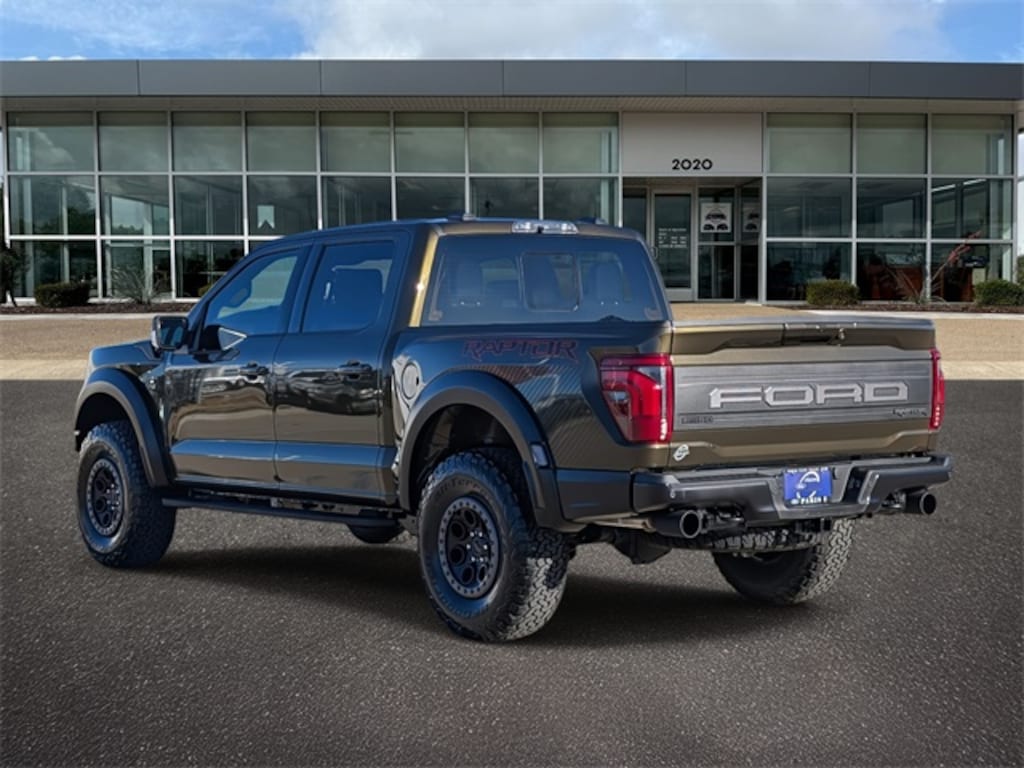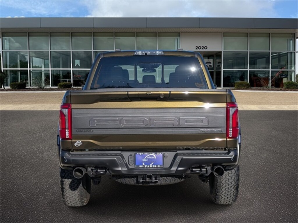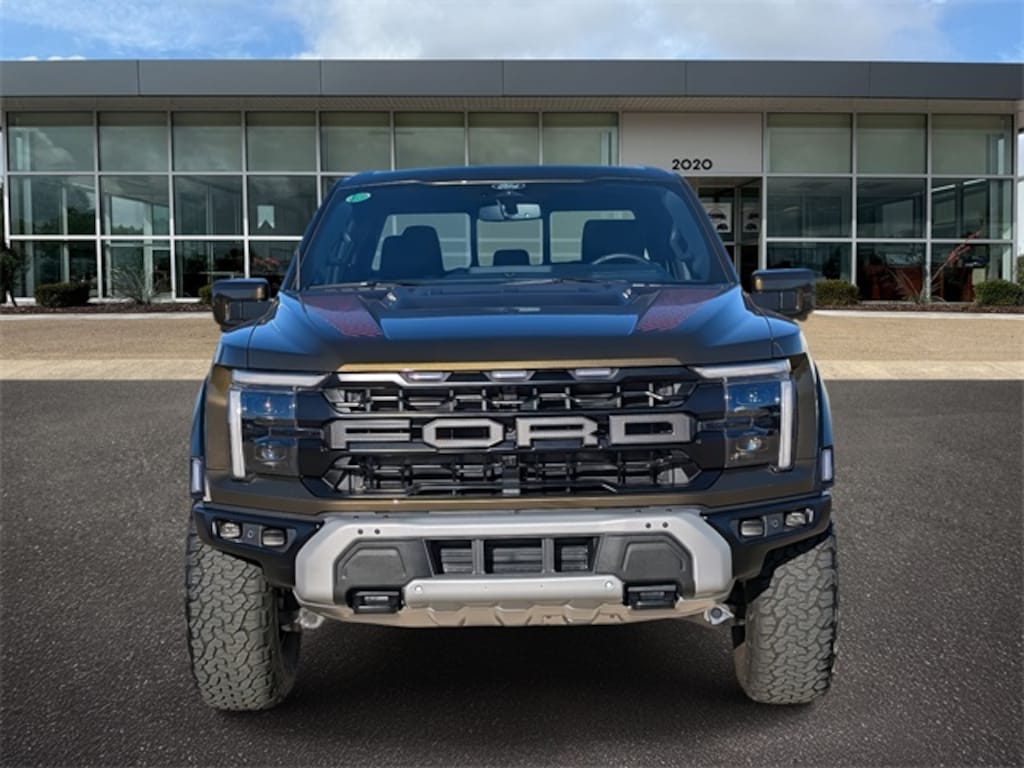 Green 2025 Ford F-150 Raptor 4WD 10-Speed Automatic 3.5L V6 EcoBoost Equipment Group 802A Raptor 37 (Carbon Fiber Interior Appliques, Dual Valve Shocks, Modular Front Bumper, RECARO Alcantara Suede Front Seats, and Wheels: Raptor 37 Unique 17" Cast Aluminum), 4WD, 14 Speakers, 17" Cast Aluminum Wheels, 4-Wheel Disc Brakes, ABS brakes, Adjustable pedals, Air Conditioning, Alloy wheels, AM/FM radio: SiriusXM with 360L, Auto High-beam Headlights, Auto tilt-away steering wheel, Auto-dimming door mirrors, Auto-dimming Rear-View mirror, Automatic temperature control, Brake assist, Bumpers: body-color, Compass, Delay-off headlights, Driver door bin, Driver vanity mirror, Dual front impact airbags, Dual front side impact airbags, Electronic Locking w/4.10 Axle Ratio, Electronic Stability Control, Emergency communication system: SYNC 4 911 Assist, Front anti-roll bar, Front Bucket Seats, Front Center Armrest, Front dual zone A/C, Front fog lights, Front License Plate Bracket, Front reading lights, Front wheel independent suspension, Fully automatic headlights, Garage door transmitter, Heads-Up Display, Heated door mirrors, Heated front seats, Heated rear seats, Heated steering wheel, Illuminated entry, Internet access capable: FordPass Connect 5G, Lane Departure Warning System, Leather steering wheel, Leather Trimmed Seats, Low tire pressure warning, Memory seat, Navigation system: Connected Navigation, Occupant sensing airbag, Outside temperature display, Overhead airbag, Overhead console, Panic alarm, Passenger door bin, Passenger vanity mirror, Pedal memory, Power door mirrors, Power driver seat, Power passenger seat, Power steering, Power windows, Radio data system, Radio: B&O Unleashed Sound System by Bang & Olufsen, Rain sensing wipers, Rear reading lights, Rear step bumper, Rear window defroster, Remote keyless entry, Security system, Speed control, Speed-sensing steering, Split folding rear seat, Steering wheel memory, Steering wheel mounted audio controls, SYNC 4 w/Enhanced Voice Recognition, Tachometer, Telescoping steering wheel, Tilt steering wheel, Traction control, Trip computer, Turn signal indicator mirrors, Twin Panel Moonroof, Variably intermittent wipers, and Ventilated front seats. 4WD.