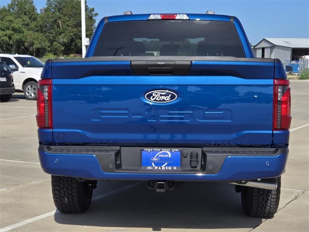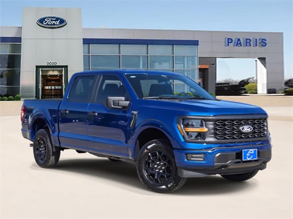 Atlas Blue Metallic 2025 Ford F-150 STX 4WD 10-Speed Automatic 2.7L V6 EcoBoost Equipment Group 200B Standard, GVWR: 6,650 lbs Payload Package, F-150 STX, 4D SuperCrew, 2.7L V6 EcoBoost, 10-Speed Automatic, 4WD, Atlas Blue Metallic, Black w/Medium Dark Slate w/Cloth 40/Console/40 Front Seats, 3.55 Axle Ratio, 4-Wheel Disc Brakes, 6 Speakers, ABS brakes, Air Conditioning, Alloy wheels, AM/FM radio: SiriusXM with 360L, Auto High-beam Headlights, Brake assist, Bumpers: body-color, Compass, Delay-off headlights, Driver door bin, Dual front impact airbags, Dual front side impact airbags, Electronic Stability Control, Emergency communication system: SYNC 4 911 Assist, Front anti-roll bar, Front Bucket Seats, Front Center Armrest, Front reading lights, Front wheel independent suspension, Fully automatic headlights, Heated door mirrors, Illuminated entry, Low tire pressure warning, Occupant sensing airbag, Outside temperature display, Overhead airbag, Overhead console, Panic alarm, Passenger door bin, Passenger vanity mirror, Power door mirrors, Power steering, Power windows, Radio data system, Radio: AM/FM Stereo w/SiriusXM 360L, Rear Parking Sensors, Rear step bumper, Rear window defroster, Remote keyless entry, Security system, Speed control, Split folding rear seat, Steering wheel mounted audio controls, SYNC 4 w/Enhanced Voice Recognition, Tachometer, Telescoping steering wheel, Tilt steering wheel, Traction control, Trip computer, Variably intermittent wipers, Voltmeter, and Wheels: 18" Gloss Black. F-150 STX, 4D SuperCrew, 2.7L V6 EcoBoost, 10-Speed Automatic, 4WD, Atlas Blue Metallic, Black w/Medium Dark Slate w/Cloth 40/Console/40 Front Seats.