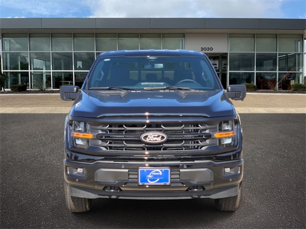 Agate Black Metallic 2025 Ford F-150 XLT 4WD 10-Speed Automatic 3.5L V6 EcoBoost Equipment Group 301A Standard (6" Angular Bright Anodized Step Bar, Black Painted Grille w/Chrome Center Bar, Chrome Door & Tailgate Handles, Chrome Single-Tip Exhaust, Cloth 40/20/40 Front Seat w/Console, Dual-Zone Electronic Automatic Temperature Control, and Wrapped Steering Wheel), GVWR: 6,650 lbs Payload Package, F-150 XLT, 4D SuperCrew, 3.5L V6 EcoBoost, 10-Speed Automatic, 4WD, Agate Black Metallic, Black w/Unique Sport Cloth 40/Console/40 Front-Seats, 3.55 Axle Ratio, 4-Wheel Disc Brakes, 4x4 FX4 Off-Road Bodyside Decal, 6 Speakers, ABS brakes, Air Conditioning, Alloy wheels, AM/FM radio: SiriusXM with 360L, Auto High-beam Headlights, Brake assist, Bumpers: chrome, Chrome wheels, Cloth 40/20/40 Front Seat, Compass, Delay-off headlights, Driver door bin, Driver vanity mirror, Dual front impact airbags, Dual front side impact airbags, Electronic Stability Control, Emergency communication system: SYNC 4 911 Assist, Front anti-roll bar, Front Center Armrest, Front fog lights, Front reading lights, Front wheel independent suspension, Fully automatic headlights, Heated door mirrors, Illuminated entry, Low tire pressure warning, Occupant sensing airbag, Outside temperature display, Overhead airbag, Overhead console, Panic alarm, Passenger door bin, Passenger vanity mirror, Power door mirrors, Power steering, Power windows, Radio data system, Radio: AM/FM Stereo w/SiriusXM 360L, Rear Parking Sensors, Rear reading lights, Rear step bumper, Rear window defroster, Remote keyless entry, Security system, Speed control, Split folding rear seat, Steering wheel mounted audio controls, SYNC 4 w/Enhanced Voice Recognition, Tachometer, Telescoping steering wheel, Tilt steering wheel, Traction control, Trip computer, Variably intermittent wipers, Voltmeter, and Wheels: 18" Chrome-Like PVD. F-150 XLT, 4D SuperCrew, 3.5L V6 EcoBoost, 10-Speed Automatic, 4WD, Agate Black Metallic, Black w/Unique Sport Cloth 40/Console/40 Front-Seats.
