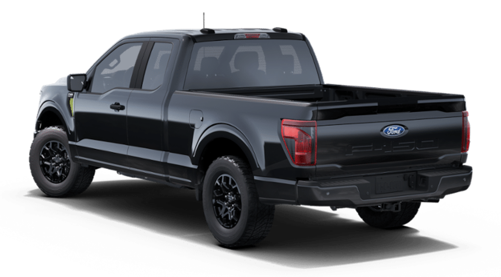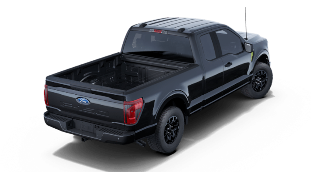 Agate Black Metallic 2025 Ford F-150 STX RWD 10-Speed Automatic 2.7L V6 EcoBoost GVWR: 6,365 lbs Payload Package, F-150 STX, Super Cab, 10-Speed Automatic, RWD, Agate Black Metallic, Black Cloth, 3.55 Axle Ratio, 4-Wheel Disc Brakes, 6 Speakers, ABS brakes, Air Conditioning, Alloy wheels, AM/FM radio: SiriusXM with 360L, Auto High-beam Headlights, Brake assist, Bumpers: body-color, Compass, Delay-off headlights, Driver door bin, Dual front impact airbags, Dual front side impact airbags, Electronic Stability Control, Emergency communication system: SYNC 4 911 Assist, Front anti-roll bar, Front Bucket Seats, Front Center Armrest, Front reading lights, Front wheel independent suspension, Fully automatic headlights, Heated door mirrors, Illuminated entry, Low tire pressure warning, Occupant sensing airbag, Outside temperature display, Overhead airbag, Overhead console, Panic alarm, Passenger door bin, Passenger vanity mirror, Power door mirrors, Power steering, Power windows, Radio data system, Radio: AM/FM Stereo w/SiriusXM 360L, Rear Parking Sensors, Rear step bumper, Rear window defroster, Remote keyless entry, Security system, Speed control, Split folding rear seat, Steering wheel mounted audio controls, SYNC 4 w/Enhanced Voice Recognition, Tachometer, Telescoping steering wheel, Tilt steering wheel, Traction control, Trip computer, Variably intermittent wipers, Voltmeter, and Wheels: 18" Gloss Black. F-150 STX, Super Cab, 10-Speed Automatic, RWD, Agate Black Metallic, Black Cloth.