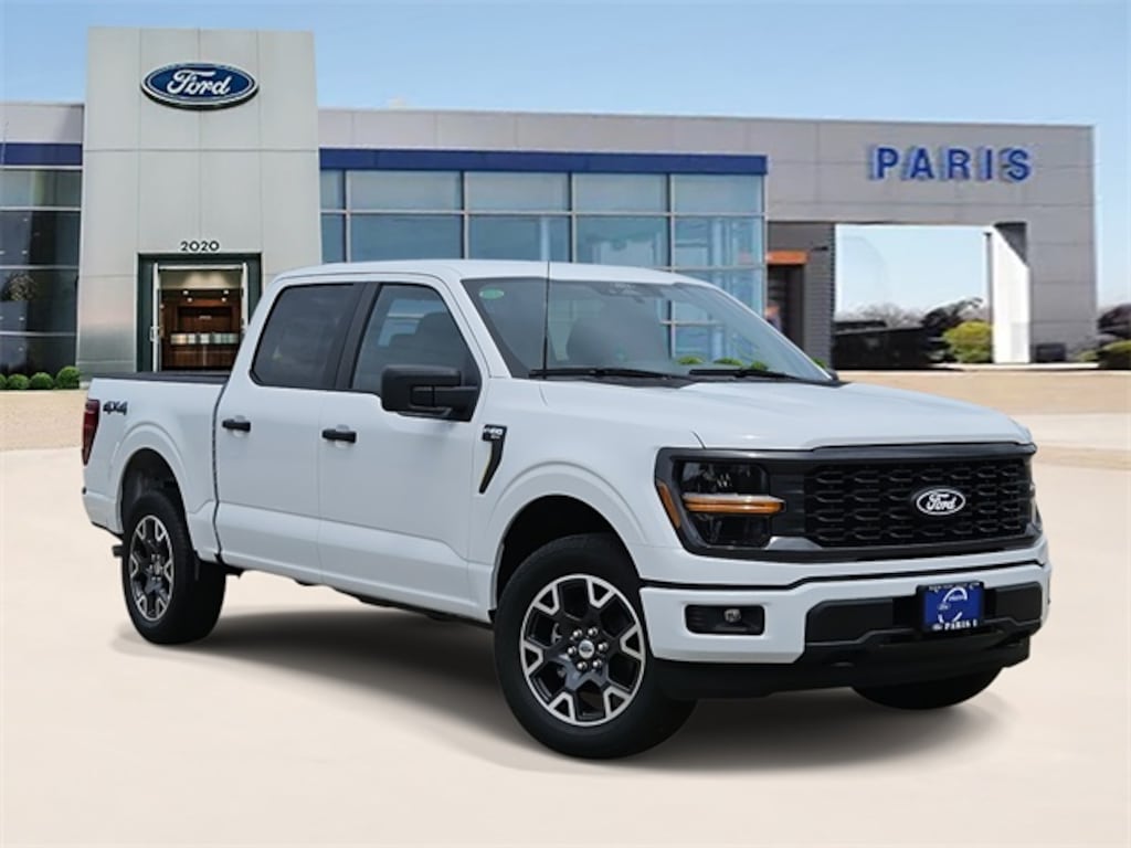 Oxford White 2025 Ford F-150 STX 4WD 10-Speed Automatic 2.7L V6 EcoBoost GVWR: 6,650 lbs Payload Package, F-150 STX, 4D SuperCrew, 2.7L V6 EcoBoost, 10-Speed Automatic, 4WD, Oxford White, Black Cloth, 3.55 Axle Ratio, 4-Wheel Disc Brakes, 6 Speakers, ABS brakes, Air Conditioning, Alloy wheels, AM/FM radio: SiriusXM with 360L, Auto High-beam Headlights, Brake assist, Bumpers: body-color, Compass, Delay-off headlights, Driver door bin, Dual front impact airbags, Dual front side impact airbags, Electronic Stability Control, Emergency communication system: SYNC 4 911 Assist, Front anti-roll bar, Front Bucket Seats, Front Center Armrest, Front reading lights, Front wheel independent suspension, Fully automatic headlights, Heated door mirrors, Illuminated entry, Low tire pressure warning, Occupant sensing airbag, Outside temperature display, Overhead airbag, Overhead console, Panic alarm, Passenger door bin, Passenger vanity mirror, Power door mirrors, Power steering, Power windows, Radio data system, Radio: AM/FM Stereo w/SiriusXM 360L, Rear Parking Sensors, Rear step bumper, Rear window defroster, Remote keyless entry, Security system, Speed control, Split folding rear seat, Steering wheel mounted audio controls, SYNC 4 w/Enhanced Voice Recognition, Tachometer, Telescoping steering wheel, Tilt steering wheel, Traction control, Trip computer, Variably intermittent wipers, Voltmeter, and Wheels: 18" Gloss Black. F-150 STX, 4D SuperCrew, 2.7L V6 EcoBoost, 10-Speed Automatic, 4WD, Oxford White, Black Cloth.