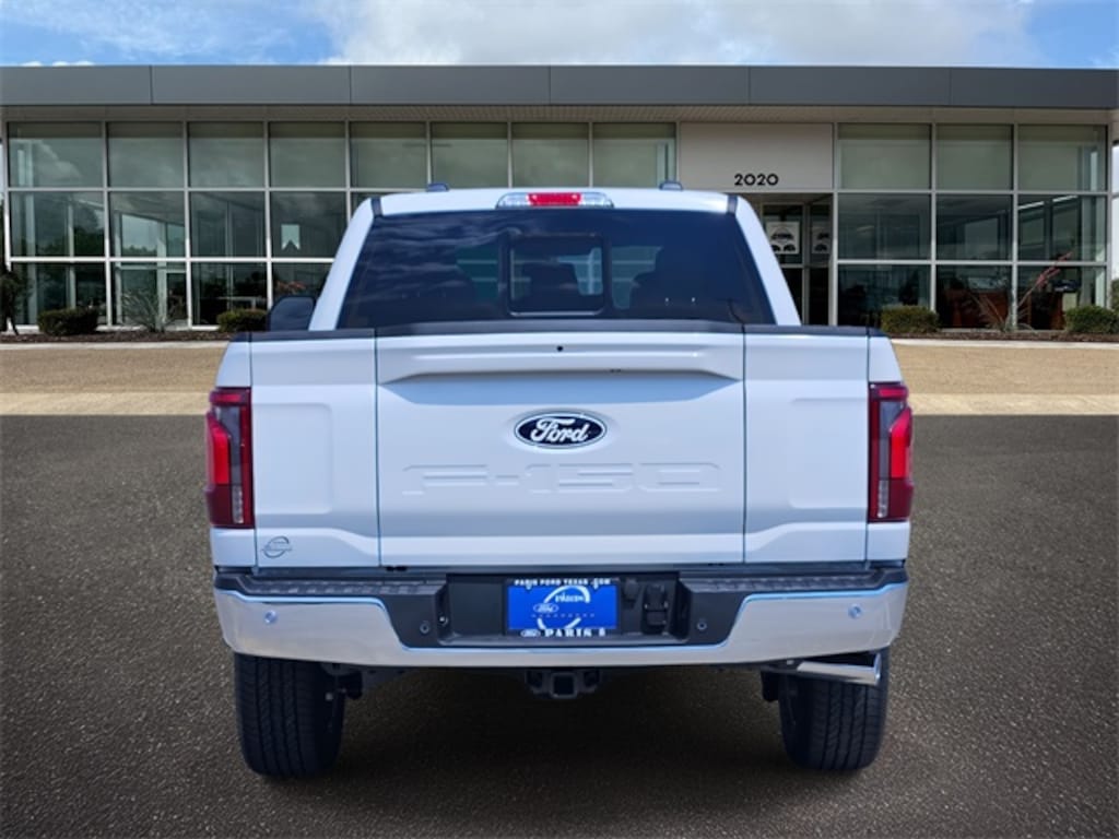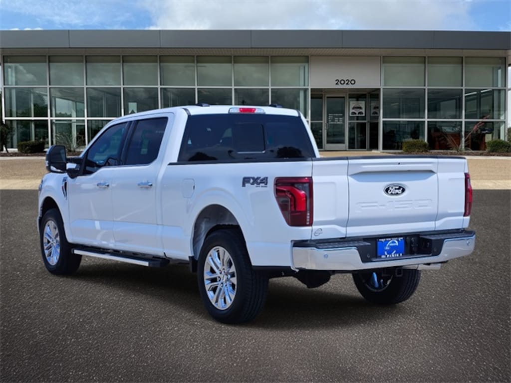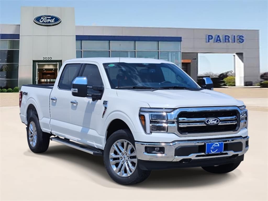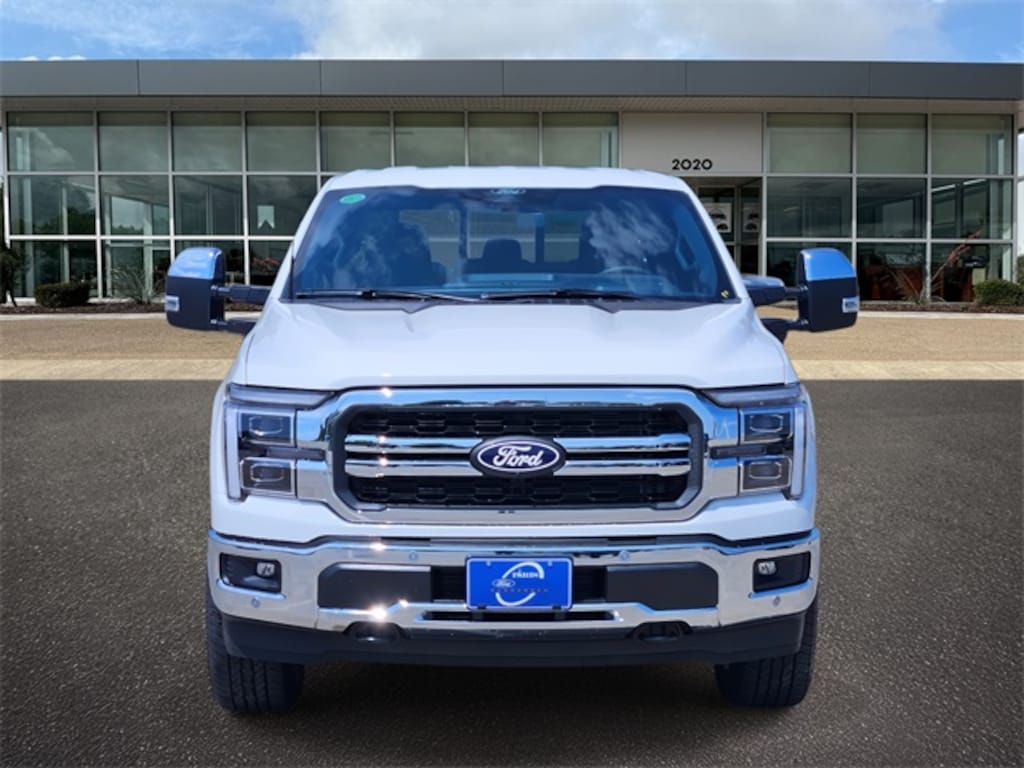 Star White Metallic Tri-Coat 2025 Ford F-150 Lariat 4WD 10-Speed Automatic 3.5L V6 EcoBoost Equipment Group 502A High (2nd Row Heated Seats, Ambient Lighting - Ice Blue Color Only, Heads-Up Display, Illuminated Driver & Passenger Visors, Power-Sliding Rear Window, Radio: B&O Unleashed Sound System by Bang & Olufsen, and Wheels: 20" Chrome-Like PVD), Mobile Office Package (Console Worksurface, Partitioned Lockable Rear Storage, and Wireless Charging), Tow/Haul Package (Integrated Trailer Brake Controller), F-150 Lariat, 4D SuperCrew, 3.5L V6 EcoBoost, 10-Speed Automatic, 4WD, Star White Metallic Tri-Coat, Black w/ActiveX Seating Material Bucket Seats, 3.31 Axle Ratio, 4-Wheel Disc Brakes, 8 Speakers, ABS brakes, Active Cruise Control, ActiveX Trimmed Bucket Seats, Adjustable pedals, Air Conditioning, Alloy wheels, AM/FM radio: SiriusXM with 360L, Auto High-beam Headlights, Auto-dimming door mirrors, Auto-dimming Rear-View mirror, Automatic temperature control, BlueCruise Equipped (1-Year Plan), Brake assist, Bumpers: chrome, Chrome wheels, Compass, Delay-off headlights, Driver door bin, Driver vanity mirror, Dual front impact airbags, Dual front side impact airbags, Electronic Stability Control, Emergency communication system: SYNC 4 911 Assist, Front anti-roll bar, Front Bucket Seats, Front Center Armrest, Front dual zone A/C, Front fog lights, Front reading lights, Front wheel independent suspension, Fully automatic headlights, Garage door transmitter, Heated door mirrors, Heated front seats, Heated steering wheel, Illuminated entry, Low tire pressure warning, Memory seat, Navigation system: Connected Navigation, Occupant sensing airbag, Outside temperature display, Overhead airbag, Overhead console, Panic alarm, Passenger door bin, Passenger vanity mirror, Pedal memory, Power door mirrors, Power driver seat, Power passenger seat, Power steering, Power windows, Radio data system, Radio: B&O Sound System by Bang & Olufsen, Rain sensing wipers, Rear reading lights, Rear seat center armrest, Rear step bumper, Rear window defroster, Remote keyless entry, Security system, Speed control, Split folding rear seat, Steering wheel mounted audio controls, SYNC 4 w/Enhanced Voice Recognition, Tachometer, Telescoping steering wheel, Tilt steering wheel, Traction control, Trip computer, Turn signal indicator mirrors, Variably intermittent wipers, Ventilated front seats, Voltmeter, and Wheels: 18" Chrome-Like PVD. F-150 Lariat, 4D SuperCrew, 3.5L V6 EcoBoost, 10-Speed Automatic, 4WD, Star White Metallic Tri-Coat, Black w/ActiveX Seating Material Bucket Seats.