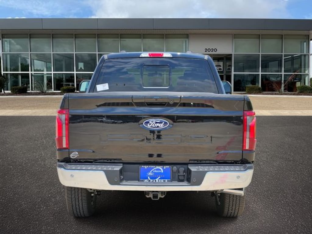 Agate Black Metallic 2025 Ford F-150 Lariat 4WD 10-Speed Automatic 3.5L V6 EcoBoost F-150 Lariat, 4D SuperCrew, 3.5L V6 EcoBoost, 10-Speed Automatic, 4WD, Agate Black Metallic, Black/Smoked Truffle Leather, 3.31 Axle Ratio, 4-Wheel Disc Brakes, 8 Speakers, ABS brakes, ActiveX Trimmed Bucket Seats, Adjustable pedals, Air Conditioning, Alloy wheels, AM/FM radio: SiriusXM with 360L, Auto High-beam Headlights, Auto-dimming door mirrors, Auto-dimming Rear-View mirror, Automatic temperature control, Brake assist, Bumpers: chrome, Chrome wheels, Compass, Delay-off headlights, Driver door bin, Driver vanity mirror, Dual front impact airbags, Dual front side impact airbags, Electronic Stability Control, Emergency communication system: SYNC 4 911 Assist, Front anti-roll bar, Front Bucket Seats, Front Center Armrest, Front dual zone A/C, Front fog lights, Front reading lights, Front wheel independent suspension, Fully automatic headlights, Garage door transmitter, Heated door mirrors, Heated front seats, Heated steering wheel, Illuminated entry, Low tire pressure warning, Memory seat, Navigation system: Connected Navigation, Occupant sensing airbag, Outside temperature display, Overhead airbag, Overhead console, Panic alarm, Passenger door bin, Passenger vanity mirror, Pedal memory, Power door mirrors, Power driver seat, Power passenger seat, Power steering, Power windows, Radio data system, Radio: B&O Sound System by Bang & Olufsen, Rain sensing wipers, Rear reading lights, Rear seat center armrest, Rear step bumper, Rear window defroster, Remote keyless entry, Security system, Speed control, Split folding rear seat, Steering wheel mounted audio controls, SYNC 4 w/Enhanced Voice Recognition, Tachometer, Telescoping steering wheel, Tilt steering wheel, Traction control, Trip computer, Turn signal indicator mirrors, Variably intermittent wipers, Ventilated front seats, Voltmeter, and Wheels: 18" Chrome-Like PVD. F-150 Lariat, 4D SuperCrew, 3.5L V6 EcoBoost, 10-Speed Automatic, 4WD, Agate Black Metallic, Black/Smoked Truffle Leather.