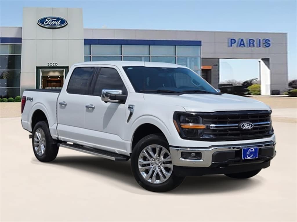 Oxford White 2025 Ford F-150 XLT 4WD 10-Speed Automatic 3.5L V6 EcoBoost Equipment Group 302A Mid (360 Degree Camera, 400W Cab & Bed Outlets, 6" Angular Bright Anodized Step Bar, Adaptive Cruise Control w/Stop & Go, Auto-Dimming Rear-View Mirror, Black Painted Grille w/Chrome Center Bar, Chrome Door & Tailgate Handles, Chrome Single-Tip Exhaust, Cloth 40/Console/40 Front Seats, Connected Navigation, Driver State Detection, Dual-Zone Electronic Automatic Temperature Control, Evasive Steering Assist, Ford Co-Pilot360 Assist 2.0, Front Parking Sensors, Heated Front Seats, Intelligent Access w/Push Button Start, Power Glass Heated Sideview Mirrors, Power-Sliding Rear Window, Remote Start System w/Remote Tailgate Release, Towing Technology, and Wrapped Steering Wheel), FX4 Off-Road Package, GVWR: 6,650 lbs Payload Package, Tow/Haul Package, F-150 XLT, 4D SuperCrew, 3.5L V6 EcoBoost, 10-Speed Automatic, 4WD, Oxford White, Black W/Medium Dark Slate Cloth, 3.31 Axle Ratio, 3.55 Axle Ratio, 4-Wheel Disc Brakes, 6 Speakers, ABS brakes, Air Conditioning, Alloy wheels, AM/FM radio: SiriusXM with 360L, Auto High-beam Headlights, Brake assist, Bumpers: chrome, Chrome wheels, Cloth 40/20/40 Front Seat, Compass, Delay-off headlights, Driver door bin, Driver vanity mirror, Dual front impact airbags, Dual front side impact airbags, Electronic Locking w/3.55 Axle Ratio, Electronic Stability Control, Emergency communication system: SYNC 4 911 Assist, Front anti-roll bar, Front Center Armrest, Front fog lights, Front License Plate Bracket, Front reading lights, Front wheel independent suspension, Fully automatic headlights, Heated door mirrors, Illuminated entry, Low tire pressure warning, Occupant sensing airbag, Outside temperature display, Overhead airbag, Overhead console, Panic alarm, Passenger door bin, Passenger vanity mirror, Power door mirrors, Power steering, Power windows, Radio data system, Radio: AM/FM Stereo w/SiriusXM 360L, Rear Parking Sensors, Rear reading lights, Rear step bumper, Rear window defroster, Remote keyless entry, Security system, Speed control, Split folding rear seat, Steering wheel mounted audio controls, SYNC 4 w/Enhanced Voice Recognition, Tachometer, Telescoping steering wheel, Tilt steering wheel, Traction control, Trip computer, Variably intermittent wipers, Voltmeter, Wheel Well Liner, Wheels: 18" Chrome-Like PVD, and Wheels: 20" Chrome-Like PVD. F-150 XLT, 4D SuperCrew, 3.5L V6 EcoBoost, 10-Speed Automatic, 4WD, Oxford White, Black W/Medium Dark Slate Cloth.