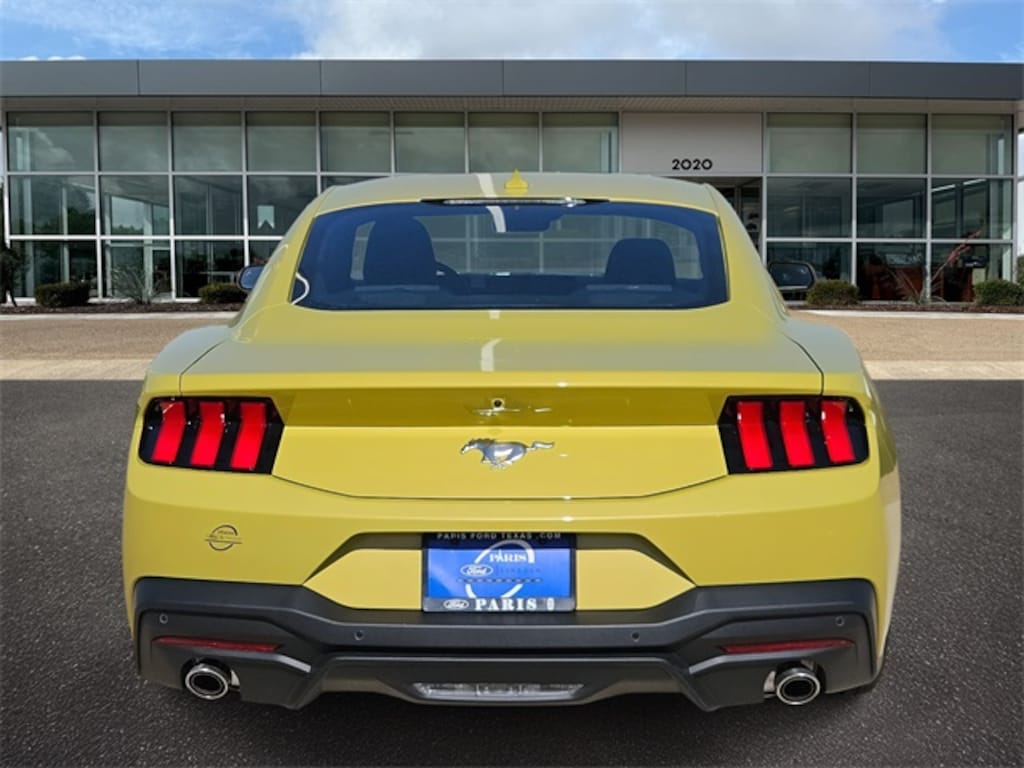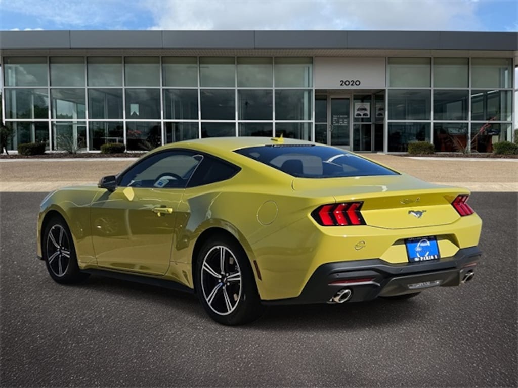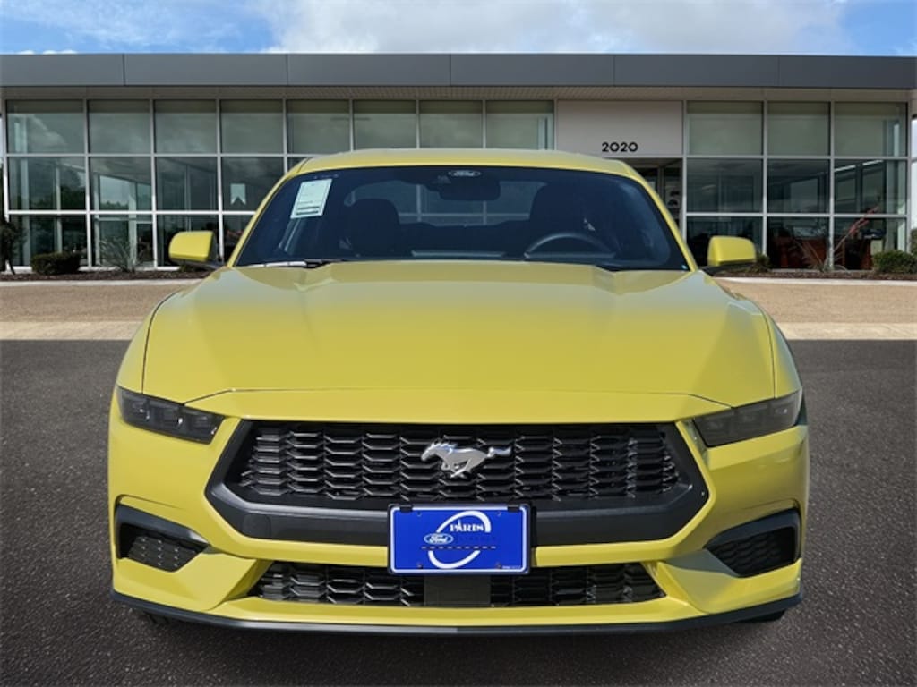 Intense Lime Yellow Metallic 2025 Ford Mustang EcoBoost RWD 10-Speed Automatic EcoBoost 2.3L I4 GTDi DOHC Turbocharged VCT ABS brakes, Alloy wheels, Compass, Electronic Stability Control, Front dual zone A/C, Illuminated entry, Low tire pressure warning, Remote keyless entry, Traction control, 4-Wheel Disc Brakes, 6 Speakers, Air Conditioning, AM/FM radio, AM/FM Stereo, Auto High-beam Headlights, Automatic temperature control, Brake assist, Bumpers: body-color, Cloth Bucket Seats, Delay-off headlights, Driver door bin, Driver vanity mirror, Dual front impact airbags, Dual front side impact airbags, Emergency communication system: 911 Assist, Exterior Parking Camera Rear, Four wheel independent suspension, Front anti-roll bar, Front Bucket Seats, Front Center Armrest, Front reading lights, Fully automatic headlights, Knee airbag, Leather Shift Knob, Occupant sensing airbag, Outside temperature display, Overhead airbag, Overhead console, Panic alarm, Passenger door bin, Passenger vanity mirror, Power door mirrors, Power steering, Power windows, Radio data system, Rain sensing wipers, Rear anti-roll bar, Rear Parking Sensors, Rear window defroster, Speed control, Speed-sensing steering, Speed-Sensitive Wipers, Split folding rear seat, Sport steering wheel, Steering wheel mounted audio controls, SYNC 4, Tachometer, Telescoping steering wheel, Tilt steering wheel, Trip computer, Variably intermittent wipers, Voltmeter, and Wheels: 18" x 8" Machined-Face Aluminum. ABS brakes, Alloy wheels, Compass, Electronic Stability Control, Front dual zone A/C, Illuminated entry, Low tire pressure warning, Remote keyless entry, Traction control.