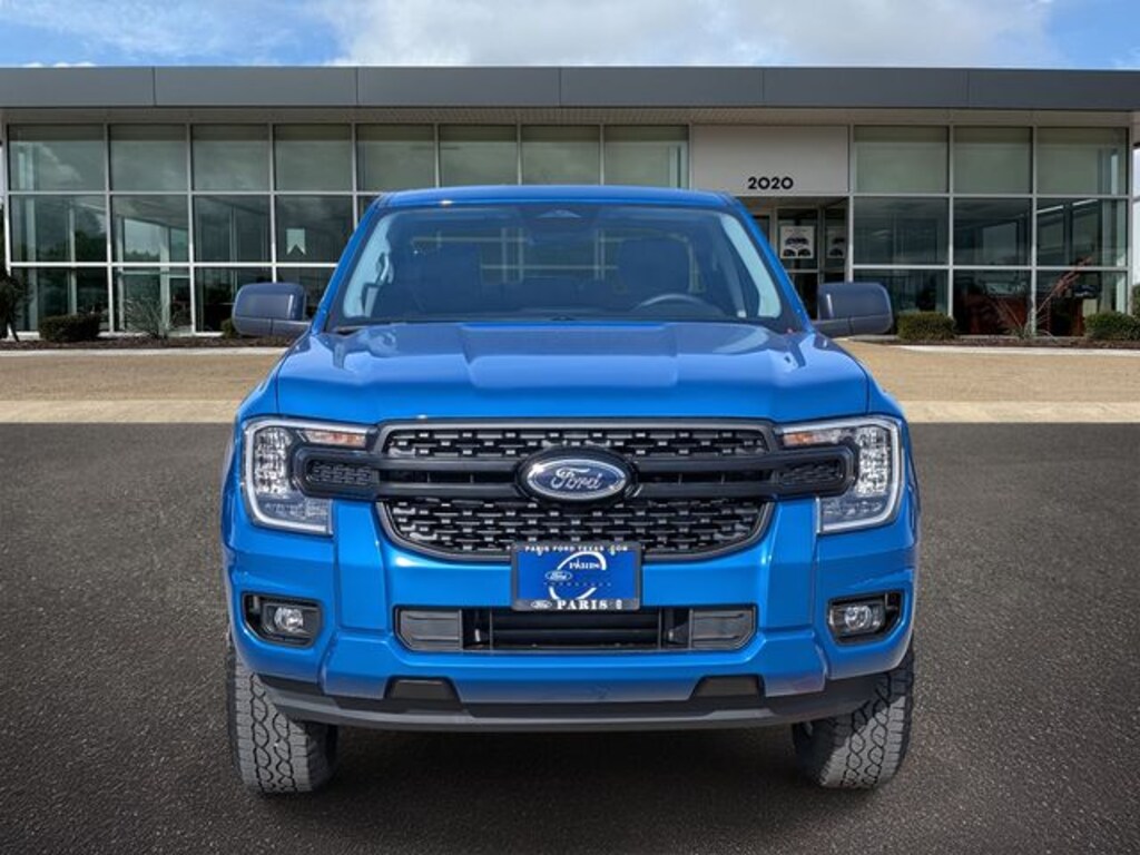 Velocity Blue Metallic 2025 Ford Ranger XL RWD 10-Speed Automatic EcoBoost 2.3L I4 GTDi DOHC Turbocharged VCT STX Appearance Package (Halogen Fog Lamps, LED Reflector Headlamps, and STX Fender Badge), 3.73 Axle Ratio, 4-Wheel Disc Brakes, 6 Speakers, ABS brakes, Air Conditioning, Alloy wheels, AM/FM radio, AM/FM Stereo, Auto High-beam Headlights, Brake assist, Bumpers: body-color, Cloth Front Bucket Seats, Compass, Delay-off headlights, Driver door bin, Dual front impact airbags, Dual front side impact airbags, Electronic Stability Control, Emergency communication system: SYNC 4 911 Assist, Front anti-roll bar, Front Bucket Seats, Front Center Armrest, Front fog lights, Front reading lights, Front wheel independent suspension, Fully automatic headlights, Illuminated entry, Low tire pressure warning, Occupant sensing airbag, Outside temperature display, Overhead airbag, Overhead console, Panic alarm, Passenger door bin, Power door mirrors, Power steering, Power windows, Rear reading lights, Rear seat center armrest, Rear step bumper, Remote keyless entry, Security system, Speed control, Speed-sensing steering, Steering wheel mounted audio controls, SYNC 4A, Telescoping steering wheel, Tilt steering wheel, Traction control, Trip computer, Variably intermittent wipers, Voltmeter, and Wheels: 17" Silver-Painted Aluminum.