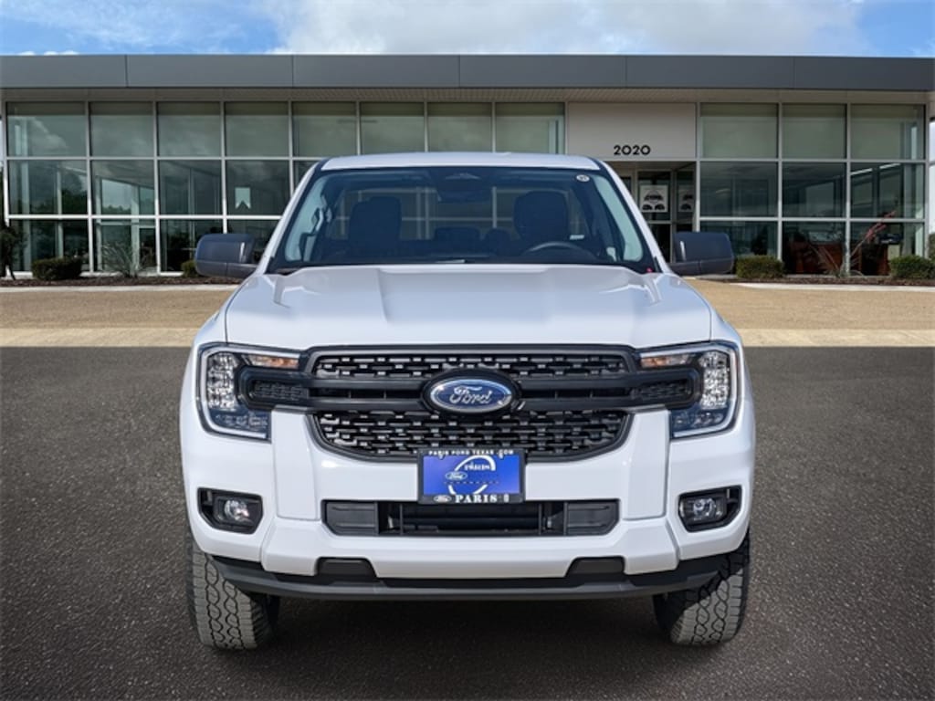 Oxford White 2025 Ford Ranger XL RWD 10-Speed Automatic EcoBoost 2.3L I4 GTDi DOHC Turbocharged VCT STX Appearance Package (Halogen Fog Lamps, LED Reflector Headlamps, and STX Fender Badge), 3.73 Axle Ratio, 4-Wheel Disc Brakes, 6 Speakers, ABS brakes, Air Conditioning, Alloy wheels, AM/FM radio, AM/FM Stereo, Auto High-beam Headlights, Brake assist, Bumpers: body-color, Cloth Front Bucket Seats, Compass, Delay-off headlights, Driver door bin, Dual front impact airbags, Dual front side impact airbags, Electronic Stability Control, Emergency communication system: SYNC 4 911 Assist, Front anti-roll bar, Front Bucket Seats, Front Center Armrest, Front fog lights, Front reading lights, Front wheel independent suspension, Fully automatic headlights, Illuminated entry, Low tire pressure warning, Occupant sensing airbag, Outside temperature display, Overhead airbag, Overhead console, Panic alarm, Passenger door bin, Power door mirrors, Power steering, Power windows, Rear reading lights, Rear seat center armrest, Rear step bumper, Remote keyless entry, Security system, Speed control, Speed-sensing steering, Steering wheel mounted audio controls, SYNC 4A, Telescoping steering wheel, Tilt steering wheel, Traction control, Trip computer, Variably intermittent wipers, Voltmeter, and Wheels: 17" Silver-Painted Aluminum.