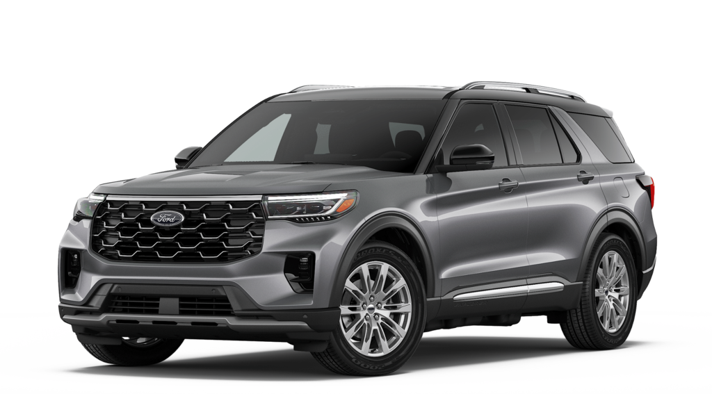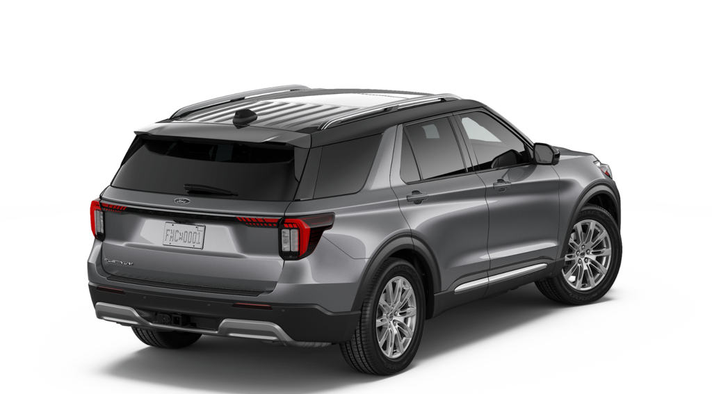 Carbonized Gray Metallic 2026 Ford Explorer Platinum RWD 10-Speed Automatic 2.3L EcoBoost I-4 14 Speakers, 3rd row seats: bench, 4-Wheel Disc Brakes, ABS brakes, ActiveX Trimmed Captain's Chairs, Air Conditioning, Alloy wheels, AM/FM radio: SiriusXM with 360L, Apple CarPlay/Android Auto, Auto High-beam Headlights, Auto-dimming door mirrors, Auto-dimming Rear-View mirror, Automatic temperature control, Brake assist, Bumpers: body-color, Compass, Delay-off headlights, Driver door bin, Driver vanity mirror, Dual front impact airbags, Dual front side impact airbags, Electronic Stability Control, Emergency communication system: 911 Assist, Exterior Parking Camera Rear, Four wheel independent suspension, Front anti-roll bar, Front Bucket Seats, Front Center Armrest, Front dual zone A/C, Front fog lights, Front reading lights, Fully automatic headlights, Garage door transmitter, Heated door mirrors, Heated front seats, Heated rear seats, Heated steering wheel, Illuminated entry, Knee airbag, Leather steering wheel, Low tire pressure warning, Memory seat, Navigation System, Occupant sensing airbag, Outside temperature display, Overhead airbag, Overhead console, Panic alarm, Passenger door bin, Passenger vanity mirror, Power door mirrors, Power driver seat, Power Liftgate, Power passenger seat, Power steering, Power windows, Radio data system, Radio: B&O Sound System by Bang & Olufsen w/HD, Rain sensing wipers, Rear air conditioning, Rear anti-roll bar, Rear reading lights, Rear window defroster, Rear window wiper, Remote keyless entry, Security system, Speed control, Speed-sensing steering, Speed-Sensitive Wipers, Split folding rear seat, Spoiler, Steering wheel mounted audio controls, Tachometer, Telescoping steering wheel, Tilt steering wheel, Traction control, Trip computer, Turn signal indicator mirrors, Variably intermittent wipers, Ventilated front seats, and Wheels: 20" Luster Nickel-Painted Aluminum.