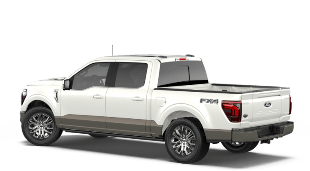 Star White Metallic Tri-Coat 2026 Ford F-150 King Ranch 4WD 10-Speed Automatic 3.5L V6 EcoBoost Ford Connectivity Package (1-Year Included), Internet access capable: 5G Modem - Ford Connectivity Package, 4WD, 4-Wheel Disc Brakes, 8 Speakers, ABS brakes, Adjustable pedals, Air Conditioning, Alloy wheels, AM/FM radio: SiriusXM with 360L, Auto High-beam Headlights, Auto tilt-away steering wheel, Auto-dimming door mirrors, Auto-dimming Rear-View mirror, Automatic temperature control, Brake assist, Chrome wheels, Compass, Delay-off headlights, Driver door bin, Driver vanity mirror, Dual front impact airbags, Dual front side impact airbags, Electronic Locking with 3.55 Axle Ratio, Electronic Stability Control, Emergency communication system: SYNC 4 911 Assist, Front anti-roll bar, Front Bucket Seats, Front Center Armrest, Front dual zone A/C, Front fog lights, Front reading lights, Front wheel independent suspension, Fully automatic headlights, Garage door transmitter, Genuine wood dashboard insert, Heated door mirrors, Heated front seats, Heated rear seats, Heated steering wheel, Illuminated entry, Leather steering wheel, Low tire pressure warning, Memory seat, Navigation system: Connected Navigation, Occupant sensing airbag, Outside temperature display, Overhead airbag, Overhead console, Panic alarm, Passenger door bin, Passenger vanity mirror, Pedal memory, Power door mirrors, Power driver seat, Power passenger seat, Power steering, Power windows, Radio data system, Radio: B&O Sound System by Bang and Olufsen, Rain sensing wipers, Rear reading lights, Rear seat center armrest, Rear step bumper, Rear window defroster, Remote keyless entry, Security system, Speed control, Split folding rear seat, Steering wheel memory, Steering wheel mounted audio controls, SYNC 4 with Enhanced Voice Recognition, Tachometer, Telescoping steering wheel, Tilt steering wheel, Traction control, Trip computer, Turn signal indicator mirrors, Variably intermittent wipers, Ventilated front seats, and Wheels: 20" Chrome-Like PVD. 4WD.