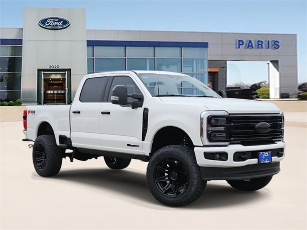 Star White Metallic Tri-Coat 2026 Ford F-250SD Platinum Lifted Wheels Tires Black out package 4WD 10-Speed Automatic 6.7L High Output Power Stroke V8 Diesel F-250 >10K GVWR Package, Ford Connectivity Package (1-Year Included), Internet access capable: 5G Modem - Ford Connectivity Package, 4WD, ABS brakes, Alloy wheels, Compass, Electronic Stability Control, Front dual zone A/C, Heated door mirrors, Heated front seats, Heated rear seats, Illuminated entry, Low tire pressure warning, Remote keyless entry, Traction control, 3.73 Axle Ratio, 4-Wheel Disc Brakes, Adjustable pedals, Air Conditioning, AM/FM radio: SiriusXM with 360L, Auto High-beam Headlights, Auto-dimming Rear-View mirror, Automatic temperature control, Brake assist, Delay-off headlights, Driver door bin, Driver vanity mirror, Dual front impact airbags, Dual front side impact airbags, Emergency communication system: SYNC 4 911 Assist, Flow-Through Console, Front anti-roll bar, Front Bucket Seats, Front Center Armrest, Front fog lights, Front reading lights, Fully automatic headlights, Garage door transmitter, Heated steering wheel, Memory seat, Navigation system: Connected Navigation, Outside temperature display, Overhead airbag, Overhead console, Panic alarm, Passenger door bin, Passenger vanity mirror, Pedal memory, Power door mirrors, Power driver seat, Power passenger seat, Power steering, Power windows, Rain sensing wipers, Rear reading lights, Rear seat center armrest, Rear step bumper, Rear window defroster, Security system, SiriusXM w/360L, Speed control, Split folding rear seat, Steering wheel mounted audio controls, SYNC 4 w/Enhanced Voice Recognition, Tachometer, Telescoping steering wheel, Tilt steering wheel, Trip computer, Turn signal indicator mirrors, Variably intermittent wipers, and Ventilated front seats. Diamond Back Bifold solid bed cover, Lifted Wheels Tires Black out package, 4WD, ABS brakes, Alloy wheels, Compass, Electronic Stability Control, Front dual zone A/C, Heated door mirrors, Heated front seats, Heated rear seats, Illuminated entry, Low tire pressure warning, Remote keyless entry, Traction control.