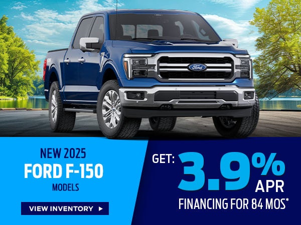 *Not all buyers will qualify for Ford Credit APR financing. 3.9% APR financing for 84 months at $13.62 per month per $1,000 financed regardless of down payment. Not available on F-150 Raptor or Raptor R models. Take new retail delivery or place a new retail order from an authorized Ford Dealer’s stock by 4/30/26. See dealer for residency restrictions, qualifications, and details. No down payment required for well-qualified customers when financed with Ford Motor Credit Company. Not all customers will qualify. Example VIN: 1FTFW5LD7SFA87917. Model shown for illustration purposes only.