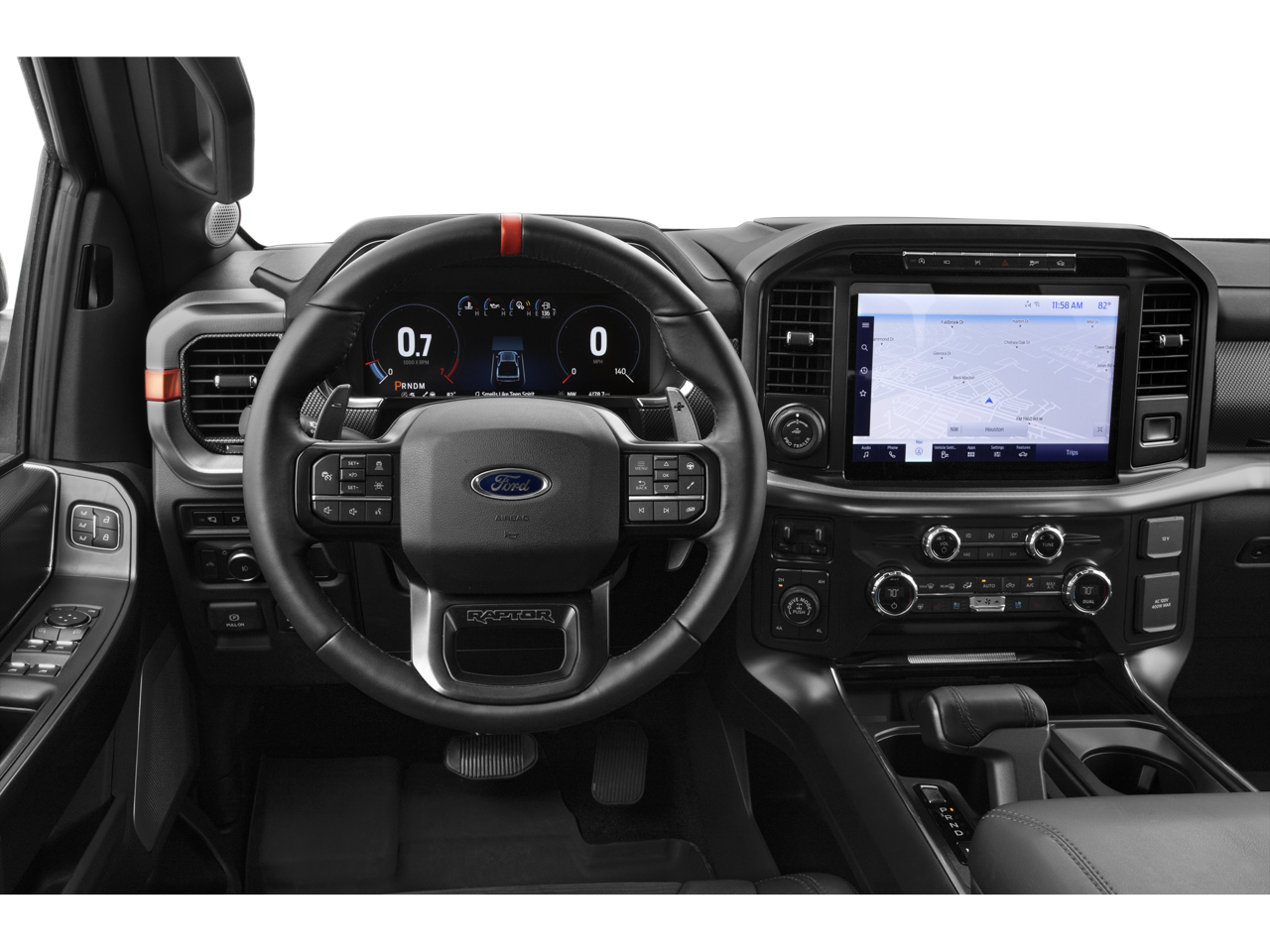 This 2021 Agate Black Metallic Ford F-150 Raptor 4WD is well equipped and includes these features and benefits: Convenience Package (Connected Built-In Navigation, Interior Work Surface, and Partitioned Lockable Fold-Flat Storage), Equipment Group 801A High (BlueCruise Prep Kit, Electronic Locking w/4.10 Axle Ratio, Forward Sensing System, Heated Steering Wheel, Leather Trim Seats w/Heated 2nd Row, LED Projector w/Dynamic Bending Headlamps, Power Tilt/Telescoping Steering Column w/Memory, Radio: B&O Unleashed Sound System by Bang & Olufsen, Rain-Sensing Wipers, SYNC 4 w/Enhanced Voice Recognition, Tailgate Applique FORD, Universal Garage Door Opener, and Wireless Charging Pad), GVWR: 7,050 lbs Payload Package, Power Tech Package (Power Tailgate and Pro Power Onboard - 2KW), Raptor Carbon Fiber Package, Raptor Exterior Graphics Package, Torsen Package (Front-Axle w/Torsen Differential and Rigid LED Fog Lamp), Tow Technology Package (360 Degree Camera, Integrated Trailer Brake Controller, and Pro Trailer Backup Assist), 4WD, 17 Cast Aluminum Wheels, 17 Forged Aluminum Bead-Lock Capable Wheels, 4-Wheel Disc Brakes, 7 Speakers, ABS brakes, Adaptive suspension, Adjustable pedals, Air Conditioning, Alloy wheels, AM/FM radio: SiriusXM with 360L, Auto High-beam Headlights, Auto Start-Stop Removal, Auto-dimming door mirrors, Auto-dimming Rear-View mirror, Automatic temperature control, Brake assist, Bumpers: body-color, Compass, Delay-off headlights, Driver door bin, Driver vanity mirror, Dual front impact airbags, Dual front side impact airbags, Electronic Stability Control, Emergency communication system: SYNC 4 911 Assist, Exterior Parking Camera Rear, Front anti-roll bar, Front Bucket Seats, Front Center Armrest, Front dual zone A/C, Front reading lights, Front wheel independent suspension, Fully automatic headlights, Heated door mirrors, Heated front seats, Illuminated entry, Leather Trim Seats, Low tire pressure warning, Memory seat, Navigation system: Connected Navigation (90-Day Trial), Occupant sensing airbag, Outside temperature display, Overhead airbag, Overhead console, Panic alarm, Passenger door bin, Passenger vanity mirror, Pedal memory, Power door mirrors, Power driver seat, Power passenger seat, Power steering, Power windows, Radio data system, Radio: AM/FM SiriusXM w/360L, Rear reading lights, Rear step bumper, Rear window defroster, Remote keyless entry, Security system, Speed control, Speed-sensing steering, Split folding rear seat, Steering wheel mounted audio controls, Tachometer, Telescoping steering wheel, Tilt steering wheel, Tough Bed Spray-In Bedliner, Traction control, Trip computer, Turn signal indicator mirrors, Twin Panel Moonroof, Variably intermittent wipers, and Ventilated front seats.