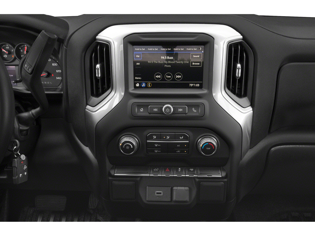 - Audio system, Chevrolet Infotainment 3 system 7" diagonal color touchscreen, AM/FM stereo. Additional features for compatible phones include: Bluetooth audio streaming for 2 active devices, voice command pass-through to phone, wired Apple CarPlay and Android Auto capable.