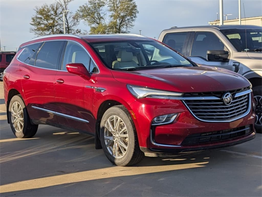 This 2023 Cherry Red Tintcoat Buick Enclave Essence FWD is well equipped and includes these features and benefits: Experience Buick Package (Front Power Sliding Moonroof), Front Mounting License Plate Bracket Package, Preferred Equipment Group 1SL (Front & Rear Park Assist and Heated Steering Wheel), FWD, 18" Aluminum Wheels, 20" Polished Aluminum Wheels, 3.49 Axle Ratio, 3rd row seats: split-bench, 4-Wheel Disc Brakes, 6 Speakers, 6-Speaker Audio System Feature, 6-Way Power Front Passenger Seat Adjuster, 7-Passenger Seating, 8-Way Power Driver Seat Adjuster, ABS brakes, Air Conditioning, Alloy wheels, AM/FM radio: SiriusXM with 360L, Auto High-beam Headlights, Auto-dimming door mirrors, Auto-dimming Rear-View mirror, Automatic temperature control, Brake assist, Bumpers: body-color, Compass, Delay-off headlights, Driver door bin, Driver vanity mirror, Dual front impact airbags, Dual front side impact airbags, Electronic Stability Control, Emergency communication system: OnStar and Buick connected services capable, Four wheel independent suspension, Front anti-roll bar, Front Bucket Seats, Front Center Armrest, Front dual zone A/C, Front reading lights, Fully automatic headlights, Garage door transmitter, Heated door mirrors, Heated Driver & Front Passenger Seats, Heated front seats, Heated steering wheel, Illuminated entry, Leather steering wheel, Low tire pressure warning, Occupant sensing airbag, Outside temperature display, Overhead airbag, Overhead console, Panic alarm, Passenger door bin, Passenger vanity mirror, Perforated Leather-Appointed Seat Trim, Power door mirrors, Power Driver Lumbar Control Seat Adjuster, Power driver seat, Power Liftgate, Power Passenger Lumbar Control Seat Adjuster, Power passenger seat, Power steering, Power windows, Premium audio system: Buick Infotainment System, Radio data system, Radio: Buick Infotainment System AM/FM Stereo, Rear air conditioning, Rear anti-roll bar, Rear reading lights, Rear window defroster, Rear window wiper, Remote keyless entry, Roof rack: rails only, Security system, SiriusXM w/360L, Speed control, Speed-sensing steering, Spoiler, Steering wheel mounted audio controls, Tachometer, Telescoping steering wheel, Tilt steering wheel, Traction control, Trip computer, Turn signal indicator mirrors, Variably intermittent wipers, Voltmeter, and Wireless Apple CarPlay/Wireless Android Auto.