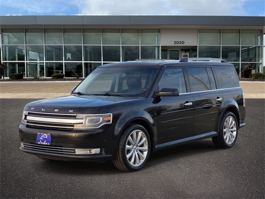 This 2019 Black Ford Flex Limited FWD is well equipped and includes these features and benefits: Equipment Group 301A (1-Touch PowerFold, 10-Way Power Heated Cooled Driver/Passenger Seat, Active Park Assist, Adaptive Cruise Control, Heated Steering Wheel, and Power Tilt/Telescopic Steering Column), 12 Speakers, 20" Polished Aluminum Wheels, 20" Wheels, 2nd Row Outboard Inflatable Safety Belts, 3.39 Axle Ratio, 3rd row seats: split-bench, 4-Wheel Disc Brakes, ABS brakes, Adjustable pedals, Air Conditioning, Alloy wheels, AM/FM radio: SiriusXM, AppLink/Apple CarPlay and Android Auto, Auto-dimming Rear-View mirror, Automatic temperature control, Brake assist, Bumpers: body-color, CD player, Child-Seat-Sensing Airbag, Compass, Delay-off headlights, Driver door bin, Driver vanity mirror, Dual front impact airbags, Dual front side impact airbags, Electronic Stability Control, Emergency communication system: 911 Assist, Exterior Parking Camera Rear, Four wheel independent suspension, Front anti-roll bar, Front Bucket Seats, Front Center Armrest, Front dual zone A/C, Front fog lights, Front reading lights, Fully automatic headlights, Garage door transmitter, Heated door mirrors, Heated front seats, High-Intensity Discharge Headlights, Illuminated entry, Leather steering wheel, Low tire pressure warning, Memory seat, Monochromatic Roof, Multipanel Vista Roof, Navigation System, Occupant sensing airbag, Outside temperature display, Overhead airbag, Overhead console, Panic alarm, Passenger door bin, Passenger vanity mirror, Pedal memory, Perforated Leather 2nd Row Heated Reclining Seats, Perforated Leather-Trimmed Front Bucket Seats, Power door mirrors, Power driver seat, Power Liftgate, Power passenger seat, Power steering, Power windows, Premium audio system: Sony, Radio data system, Radio: AM/FM/HD Single-CD/MP3 Capable, Rain sensing wipers, Rear air conditioning, Rear anti-roll bar, Rear Parking Sensors, Rear reading lights, Rear seat center armrest, Rear window defroster, Rear window wiper, Remote keyless entry, Roof-Rack Side Rails, Security system, Speed control, Speed-Sensitive Wipers, Split folding rear seat, Steering wheel mounted audio controls, SYNC 3 Communications & Entertainment System, Tachometer, Telescoping steering wheel, Tilt steering wheel, Traction control, Trip computer, Turn signal indicator mirrors, Variably intermittent wipers, Voice-Activated Touchscreen Navigation System, and Wheels: 19" Premium Luster Nickel-Painted Aluminum.