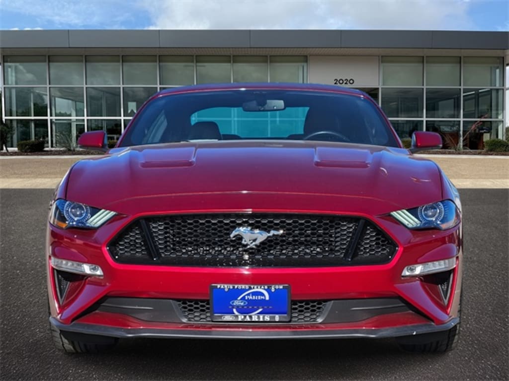 This 2019 Ruby Red Ford Mustang GT Premium RWD is well equipped and includes these features and benefits: Equipment Group 400A, 20" Wheels, 4-Wheel Disc Brakes, 9 Speakers, ABS brakes, Air Conditioning, Alloy wheels, AM/FM radio: SiriusXM, AM/FM Stereo, AppLink/Apple CarPlay and Android Auto, Auto-dimming Rear-View mirror, Automatic temperature control, Brake assist, Bumpers: body-color, Climate Controlled Heated/Cooled Front Seats, Compass, Delay-off headlights, Driver door bin, Driver vanity mirror, Dual front impact airbags, Dual front side impact airbags, Electronic Stability Control, Emergency communication system: 911 Assist, Exterior Parking Camera Rear, Four wheel independent suspension, Front anti-roll bar, Front Bucket Seats, Front Center Armrest, Front dual zone A/C, Front fog lights, Front reading lights, Fully automatic headlights, Garage door transmitter, Heated door mirrors, Heated front seats, Illuminated entry, Knee airbag, Leather Bucket Seats, Leather Shift Knob, Low tire pressure warning, Occupant sensing airbag, Outside temperature display, Overhead airbag, Overhead console, Panic alarm, Passenger door bin, Passenger vanity mirror, Power door mirrors, Power driver seat, Power passenger seat, Power steering, Power windows, Radio data system, Rear anti-roll bar, Rear window defroster, Remote keyless entry, Security system, SiriusXM Radio, Speed control, Speed-sensing steering, Speed-Sensitive Wipers, Split folding rear seat, Spoiler, Steering wheel mounted audio controls, SYNC 3 Communications & Entertainment System, Tachometer, Telescoping steering wheel, Tilt steering wheel, Traction control, Trip computer, Turn signal indicator mirrors, Variably intermittent wipers, Ventilated front seats, Voltmeter, Wheels: 18" x 8" Machined-Face Aluminum, and Wheels: 20" x 9" Premium-Painted Aluminum.
