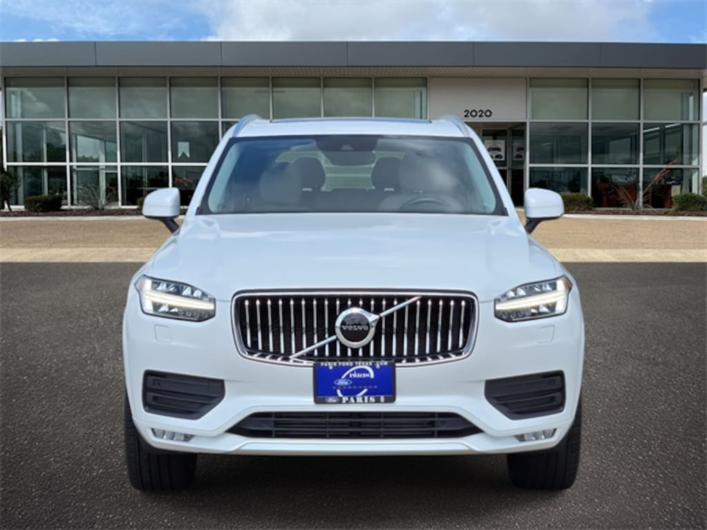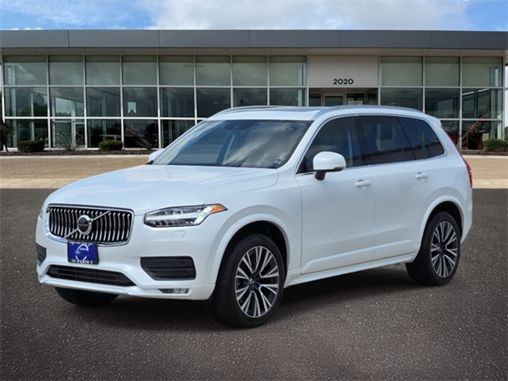 This 2022 Crystal White Volvo XC90 T5 Momentum FWD is well equipped and includes these features and benefits: Blond Artificial Leather, 10 Speakers, 3rd row seats: bucket, 4-Wheel Disc Brakes, ABS brakes, Air Conditioning, Alloy wheels, AM/FM radio: SiriusXM, Anti-whiplash front head restraints, Apple CarPlay/Android Auto, Auto High-beam Headlights, Auto-dimming door mirrors, Auto-dimming Rear-View mirror, Automatic temperature control, Brake assist, Bumpers: body-color, Delay-off headlights, Driver door bin, Driver vanity mirror, Dual front impact airbags, Dual front side impact airbags, Electronic Stability Control, Emergency communication system: Volvo Cars App w/4 Year Subscription, Exterior Parking Camera Rear, Four wheel independent suspension, Front anti-roll bar, Front Bucket Seats, Front Center Armrest w/Storage, Front dual zone A/C, Front fog lights, Front reading lights, Fully automatic headlights, Garage door transmitter: HomeLink, Heated door mirrors, Illuminated entry, Knee airbag, Leather Shift Knob, Leatherette Upholstery, Low tire pressure warning, Memory seat, Navigation system: Sensus Navigation, Occupant sensing airbag, Outside temperature display, Overhead airbag, Panic alarm, Passenger door bin, Passenger vanity mirror, Power door mirrors, Power driver seat, Power moonroof, Power passenger seat, Power steering, Power windows, Premium audio system: Sensus Connect, Radio data system, Radio: High Performance Audio System, Rain sensing wipers, Rear air conditioning, Rear anti-roll bar, Rear dual zone A/C, Rear fog lights, Rear reading lights, Rear seat center armrest, Rear window defroster, Rear window wiper, Remote keyless entry, Security system, Speed control, Speed-sensing steering, Split folding rear seat, Spoiler, Steering wheel mounted audio controls, Tachometer, Telescoping steering wheel, Tilt steering wheel, Traction control, Trip computer, Turn signal indicator mirrors, Variably intermittent wipers, and Wheels: 19" 6-Spoke Turbine Sparkling Silver Alloy.